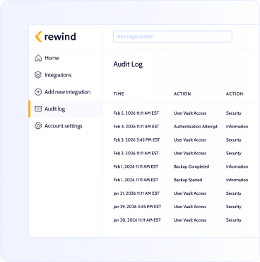 Rewind is the leading third-party provider of SOC 2-compliant cloud backups. Our full SOC report and detailed security portal is available upon request.