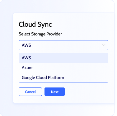 Cloud sync to Azure Blob, GCP or Amazon S3 storage allows you to automate the copy creation of your daily backup snapshots. Ensure additional security with secure syncs of your backed-up data to the cloud storage of your choice.
